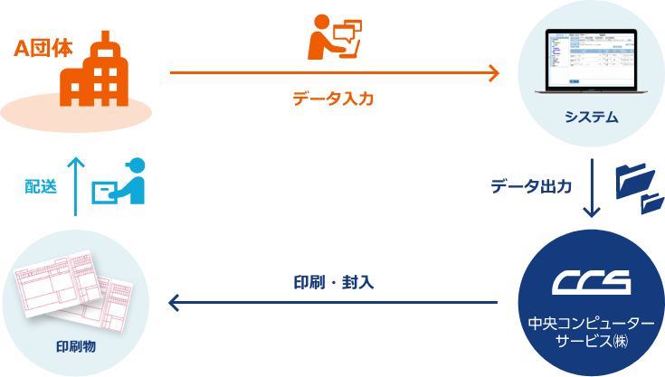 システムから出力できる各種納付書や証明書等の印刷及び封入の業務代行を行います。