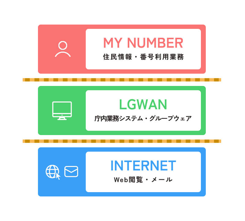 マイナンバー制度の創設を受け、総務省「自治体情報セキュリティ対策検討チーム」は、平成27年11月に「新たな自治体情報セキュリティ対策の抜本的強化に向けて」を提言しました。この提言に基づき、自治体が保有する特定個人情報や住民情報、機密情報を外部に漏えいさせないための対策が求められています。